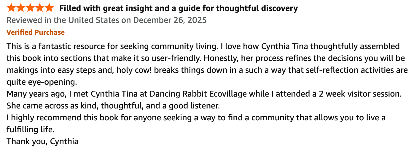 Hey there! I’m Cynthia Tina, founder of Community Findersand Ecovillage Tours, and a guide for people exploring more intentional ways of living.